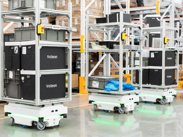 The autonomous mobile robots help make your operation more productive by eliminating walking time as they pick the materials and bring them to the workers.