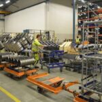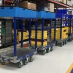 Mother-daughter carts are often used in work cells located outside of the production lines, which can deliver a variety of parts and items in sequential order, giving the work cell what it needs with the processing space allotted.