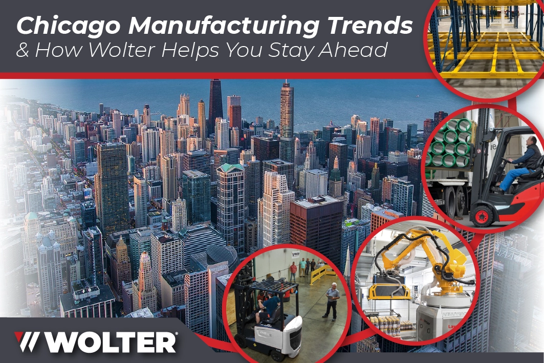 Here’s a look at the top manufacturing trends in Chicago and how Wolter’s forklifts, automation systems, and storage equipment directly align with what local facilities need to stay competitive.