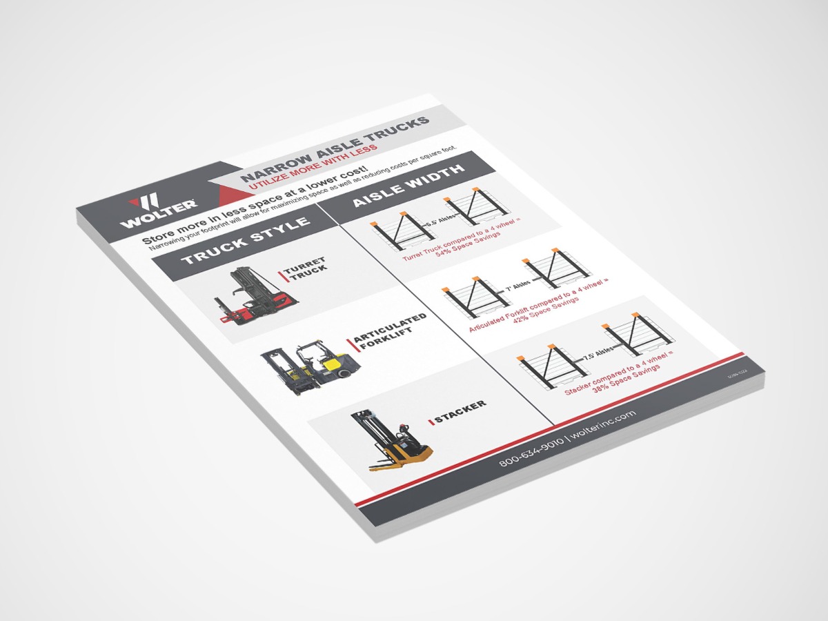 Store more in less space at a lower cost! Narrowing your footprint will allow for maximizing space as well as reducing costs per square foot.