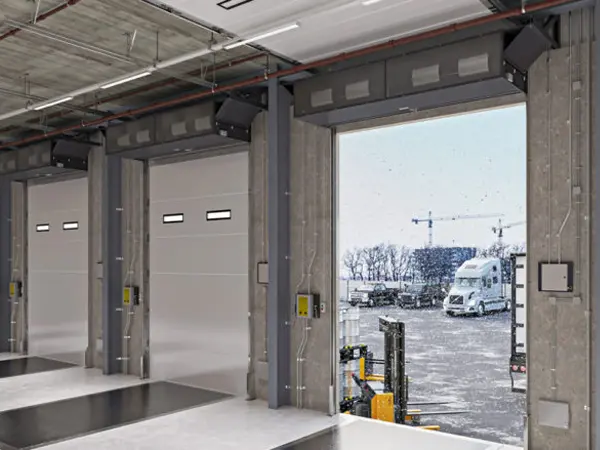 Heavy Duty Doors – Engineered for door openings with more demanding applications. Typically found on warehouse docks with up to 18′ wide openings.