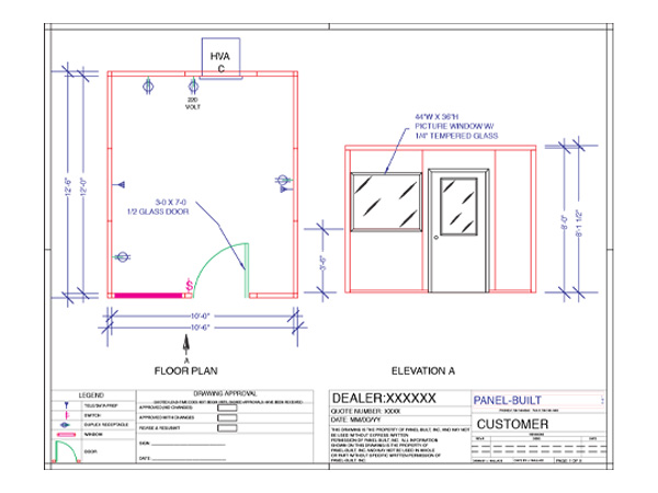 Windows and doors are available depending on the application, access, and privacy requirements. All wiring is enclosed in raceways for easy connection and installation of electrical, telephone and computer.