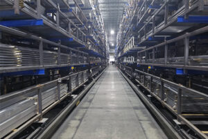 By installing the standard mobile racking rails, 14-16” of unused space was uncovered at the base of the system. The initially proposed design did not maximize every inch Linetec was searching for. When Wolter partnered with SSI Schaffer to deliver a mobile racking system design… it brought the entire storage unit down to the floor by 16”, adding an entire pallet position, and creating critical storage space across the entire system. Our collective experience knew that working with the construction company could further find areas for better space utilization. Linetec has several million pounds of aluminum in the new facility, offered in various lengths and shapes. All of the products are stored in cradles which are on average 24’ long.