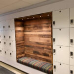 Lockers come in various sizes and finishes such as steel, wood or steel that looks like wood.